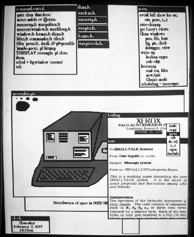 Screenshot of Smalltalk-76, image from Wikipedia article on Xerox Alto.