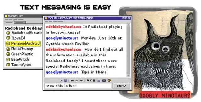 GooglyMinotaur was a SmarterChild chatbot created to promote the release of Radiohead’s album Amnesiac. Credit: Robin Bechtel.