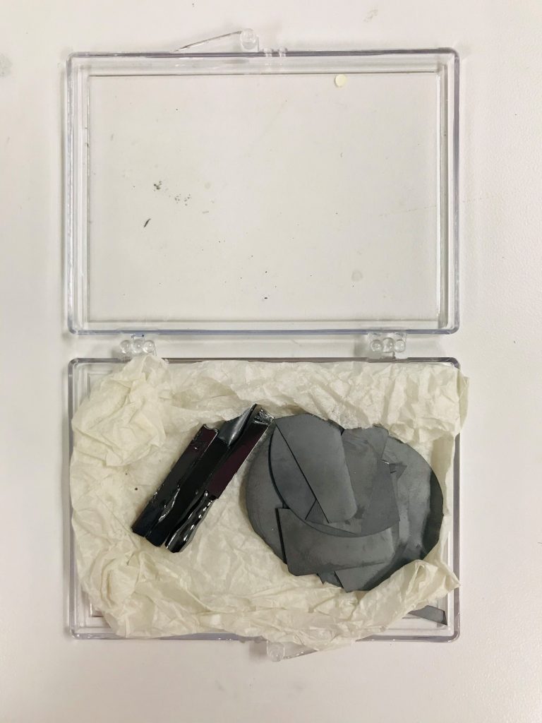 Patricia Anderson kept a set of seed crystals (left), each about an inch long, as well as several pieces of silicon crystal cut into wafers (right). Credit: Collection of CHM, 102806917