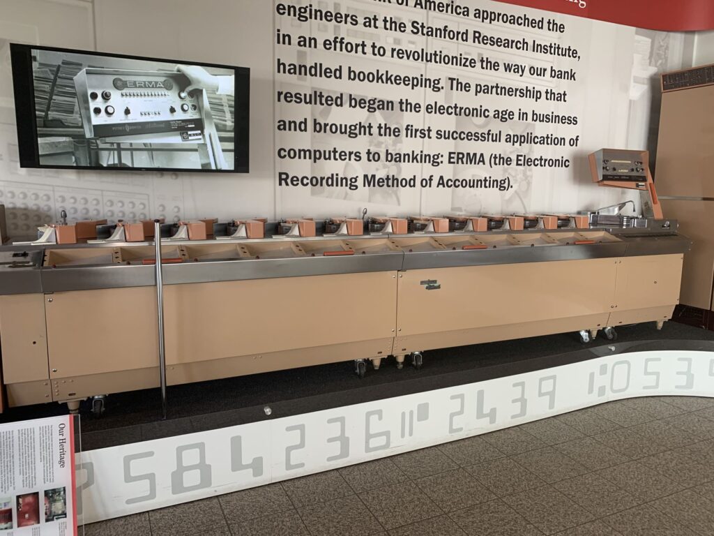 ERMA display at Bank of America’s Concord campus. Only the major parts of ERMA were preserved. Photo by Aurora Tucker.