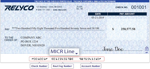 Modern check showing MICR characters at bottom.
