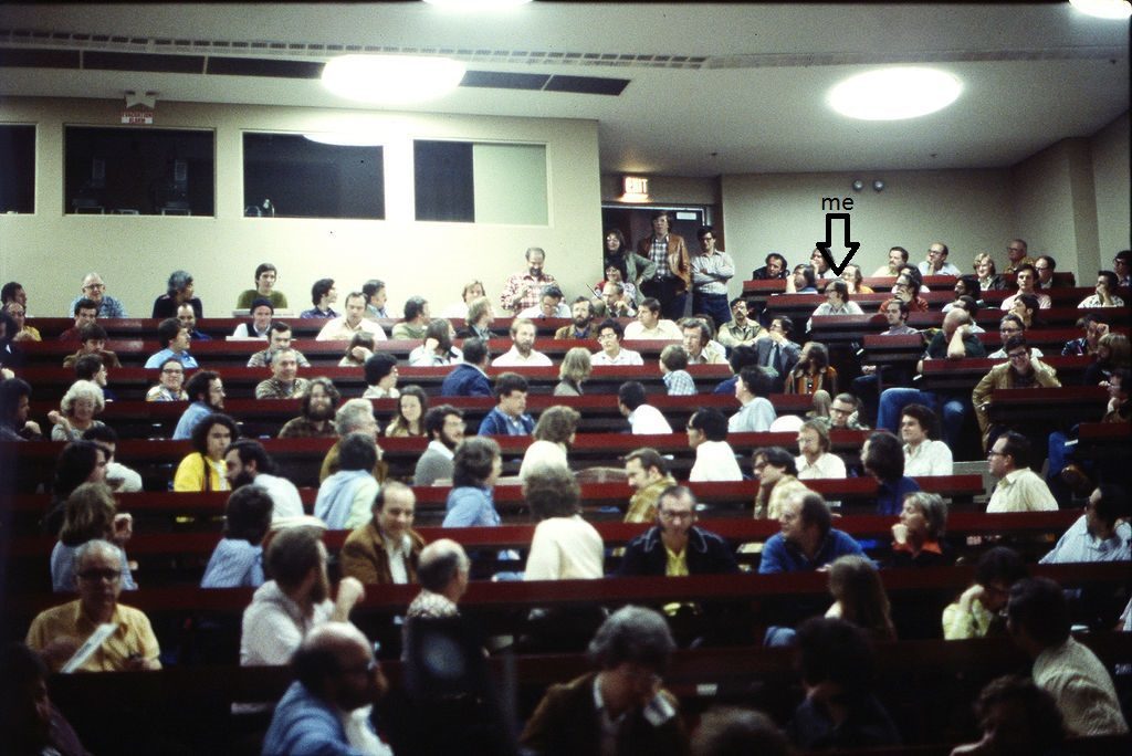 Len was one of the 32 people who gathered in Gordon French’s garage in 1975 for the first meeting of what would become the infamous Homebrew Computer Club where early PC hobbyists displayed their latest creations, including Steve Jobs and Steve Wozniak and their Apple 1. Attendance grew quickly and after outgrowing several other venues, the Homebrew Club found a home at the  Stanford Linear Accelerator Center (SLAC) auditorium. This undated photo was taken at the front of the auditorium, toward the audience.