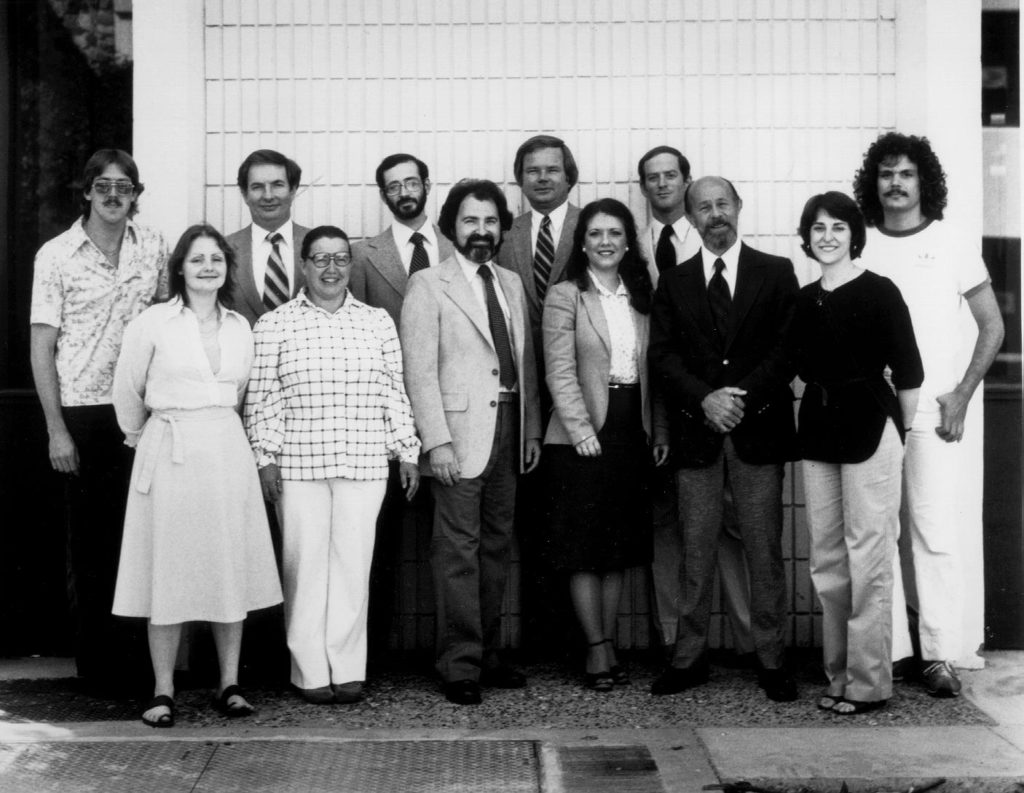 Len, a company builder himself, cofounded Nestar Systems, an early developer of networks for personal computers in 1979. This photo shows employees outside the Palo Alto offices in July 1980. Len is in the back row, third from the left.