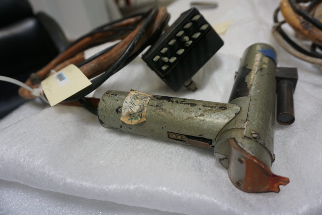 Due to Whirlwind’s day-job of displaying radar tracking data to assist human operators make real-time decisions about threats and targets, the machine was equipped with large graphical CRT displays, and a pointing device they called a Light Gun for selecting targets on the screen.