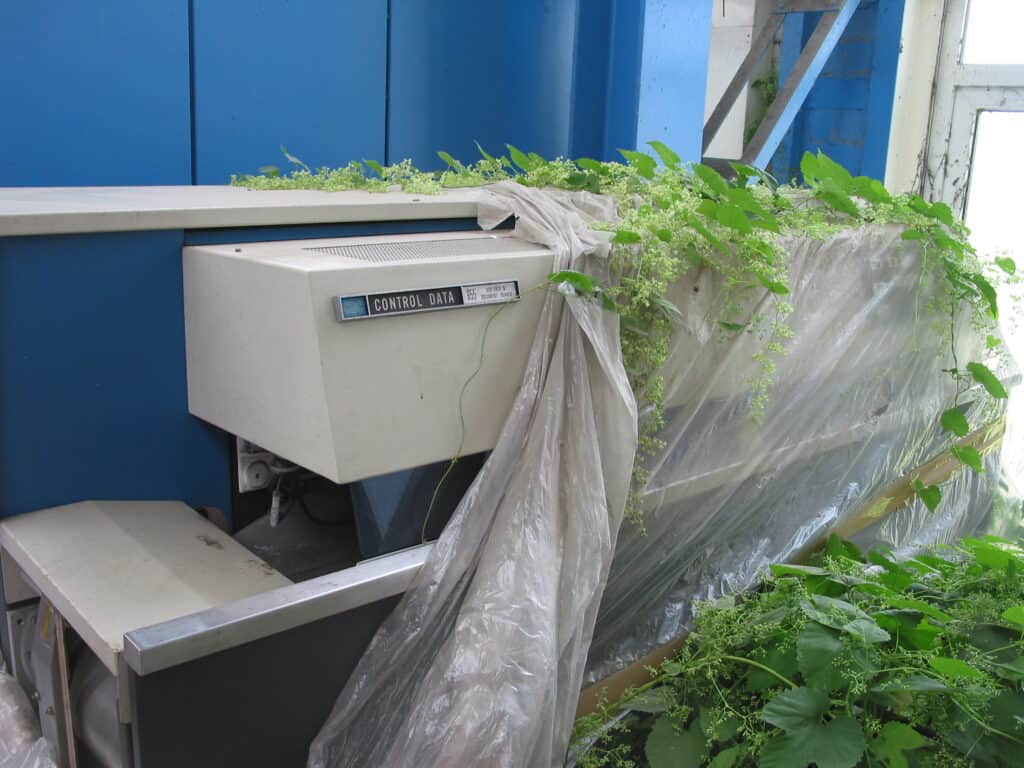 Conditions inside the warehouse were not ideal. One Control Data optical character recognition system, for example, had several plants growing out of it.